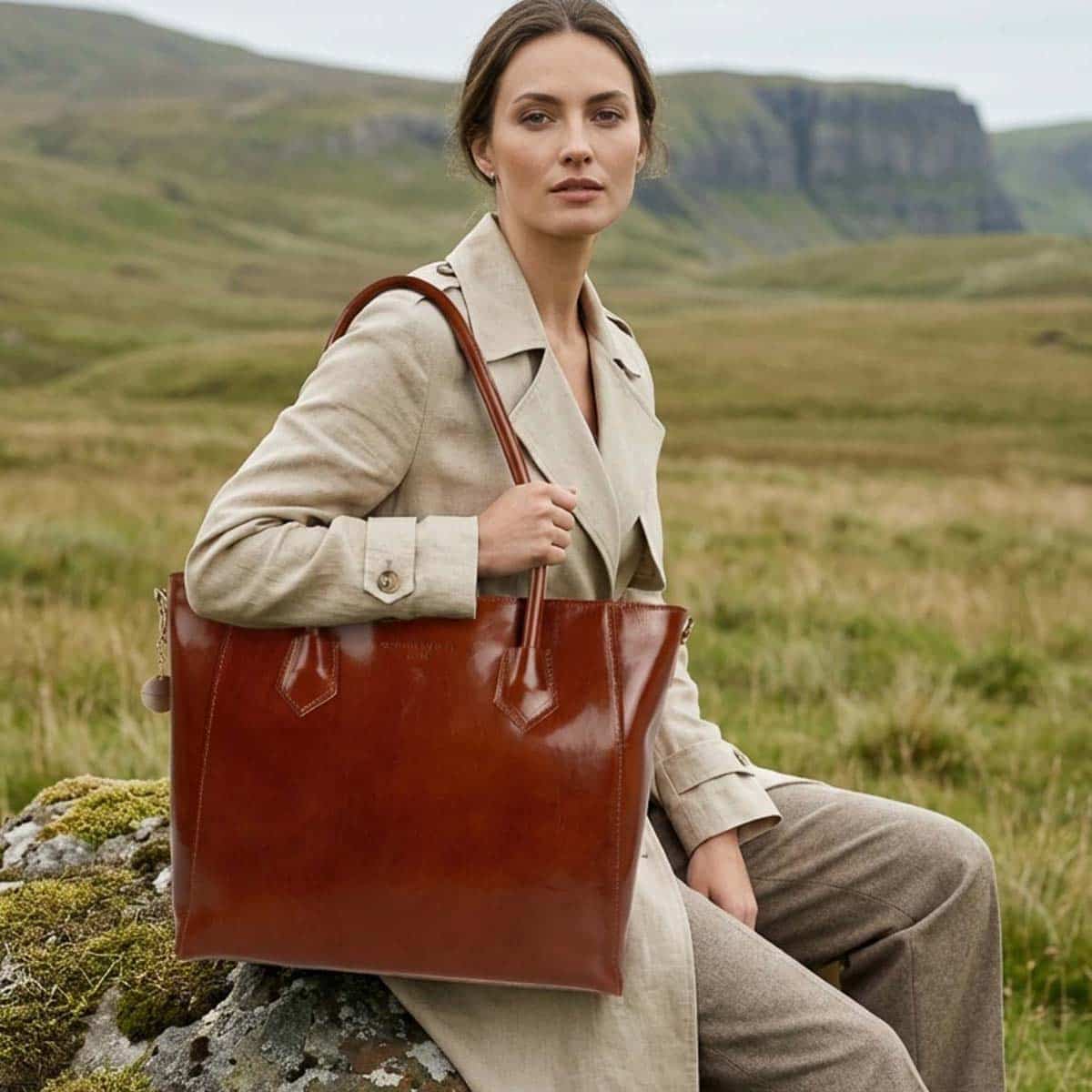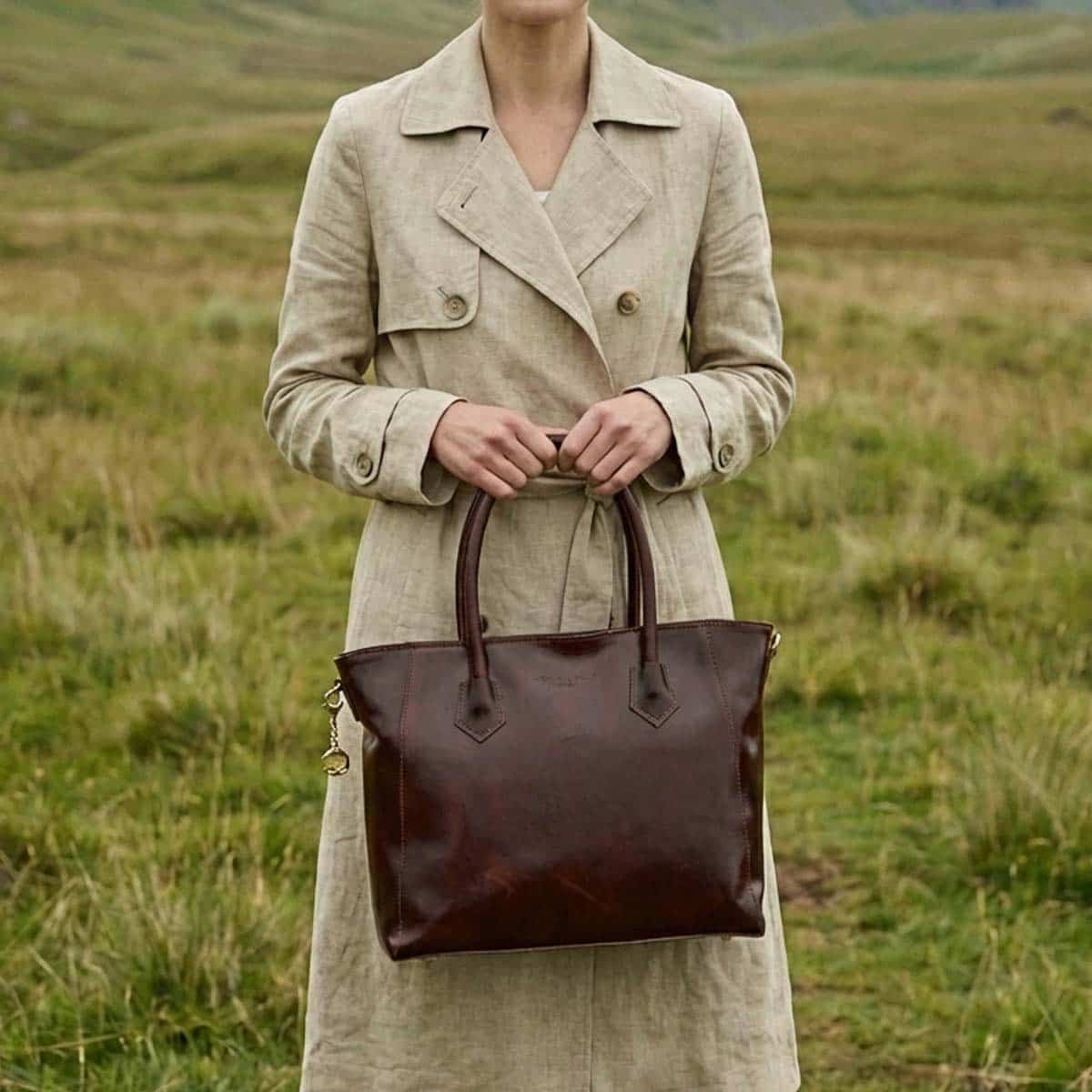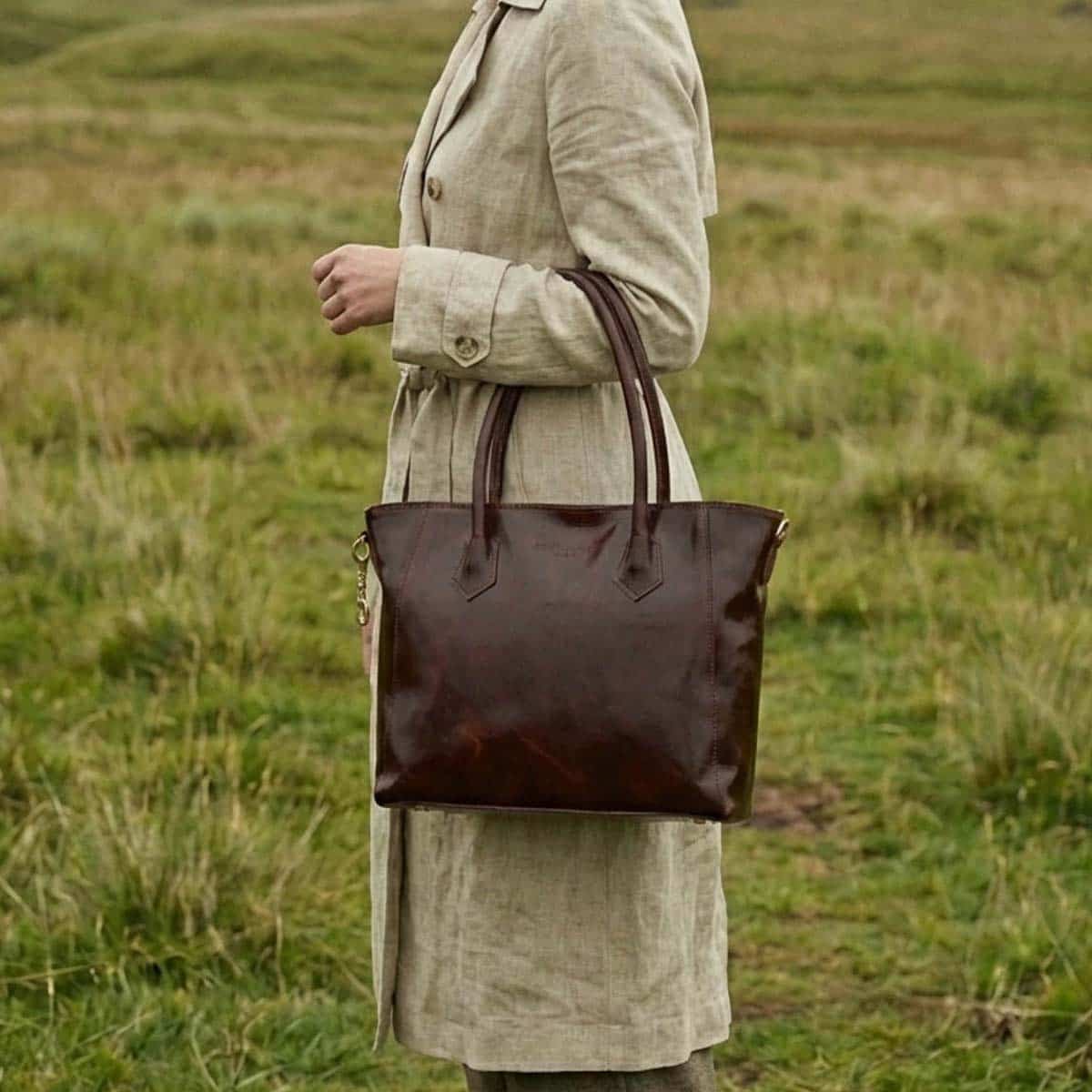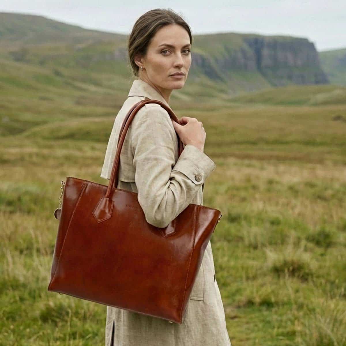 Le sac AURORA est un cabas en cuir de vachette lisse à la silhouette élégante et structurée.