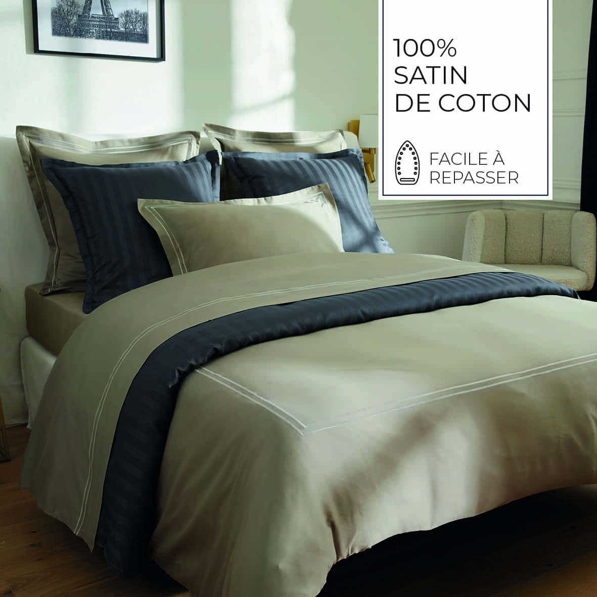 Le satin de coton révèle une douceur soyeuse et une élégance discrète, idéale pour sublimer chaque chambre. Taies d’oreiller, draps et housses de couette invitent à un sommeil luxueux et confortable, nuit après nuit.