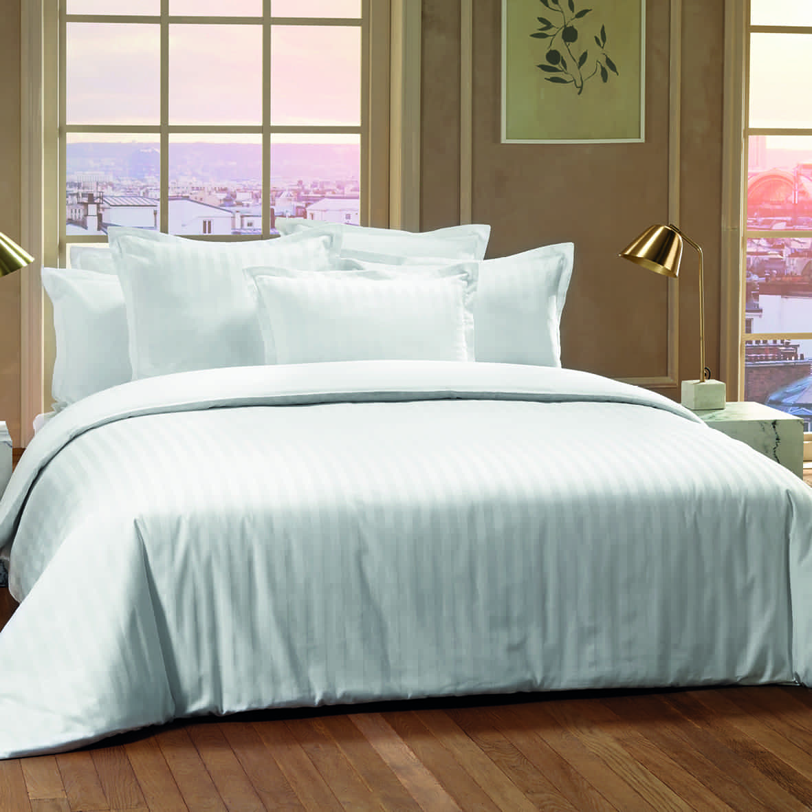 Drap plat satin de coton dobby stripe – Blanc 01 – 240 x 300 cm