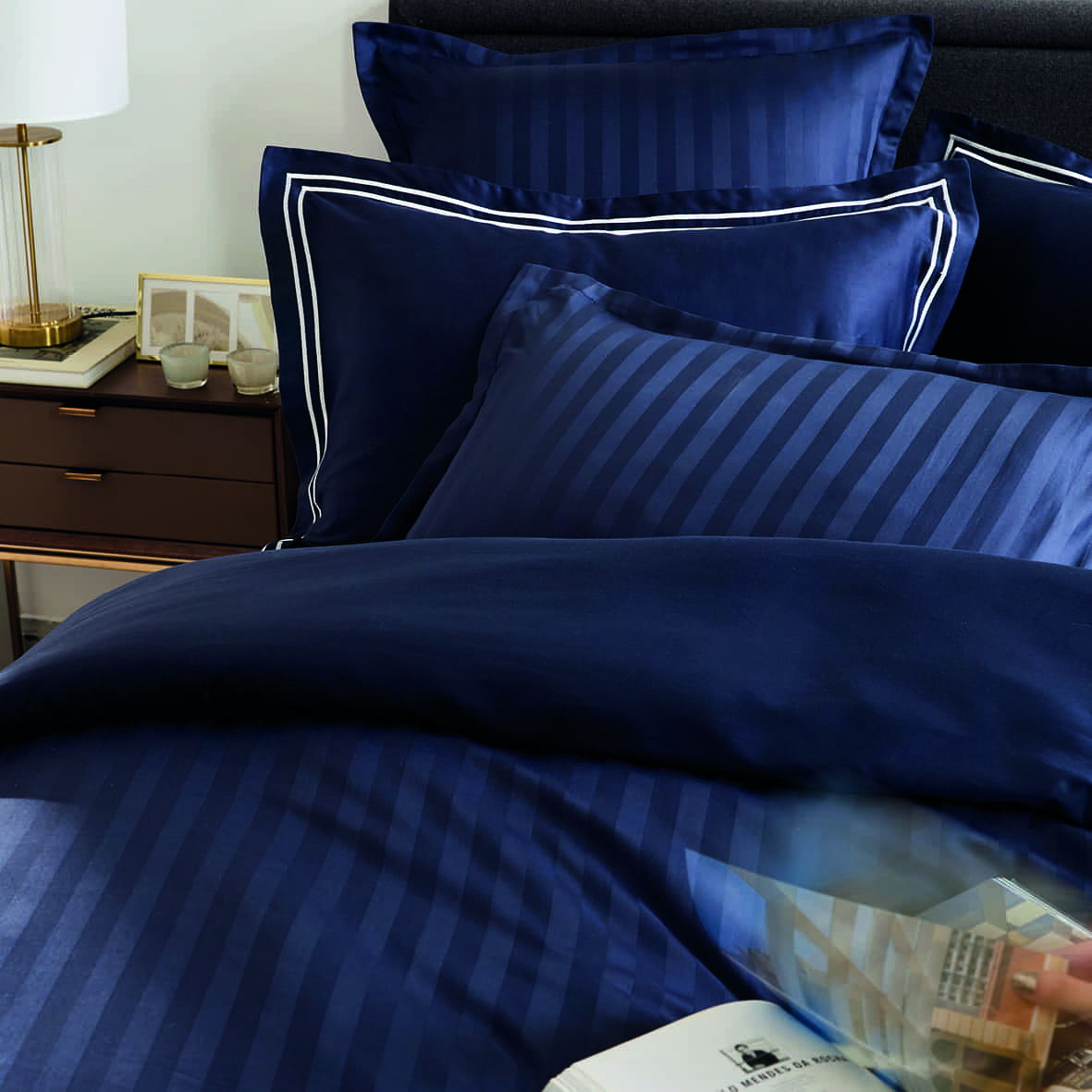 Drap plat satin de coton dobby stripe – Bleu 11 foncé – 240 x 300 cm