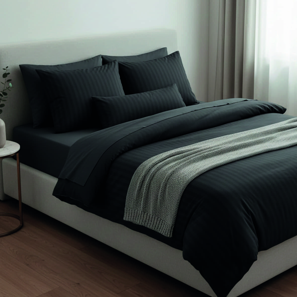 Drap plat satin de coton dobby stripe – Gris 03 – 260 x 290 cm