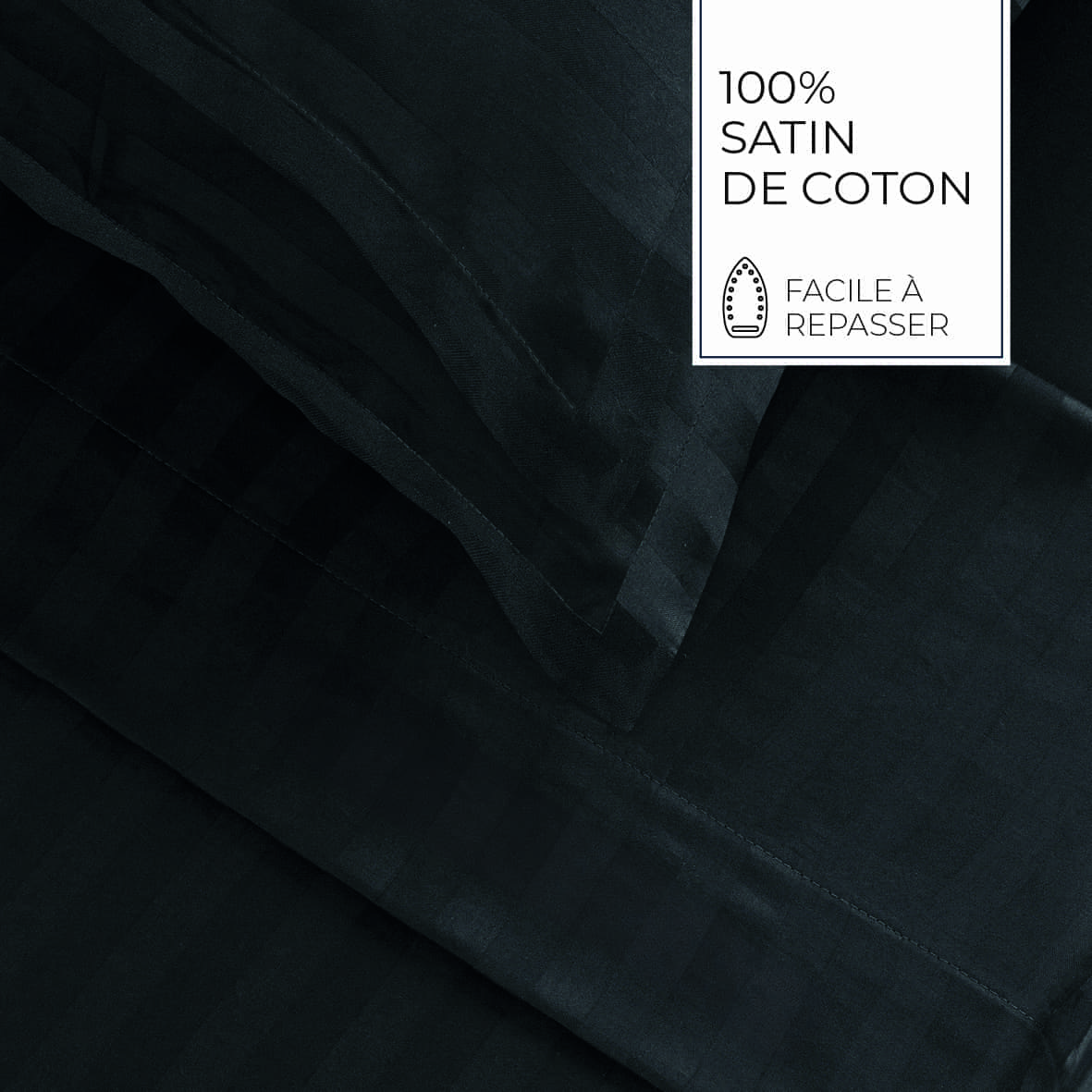 Ensemble de draps satin de coton rayure tissé dobby – Gris 03 – 230 x 270 cm + 150 x 200 x 30 cm + 2 x (50 x 80 cm)