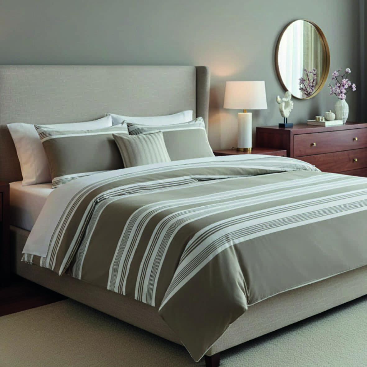 Housse de couette + taie d’oreiller satin de coton – Emilia Taupe – 240 x 220 cm + 2 x (63 x 63 cm)