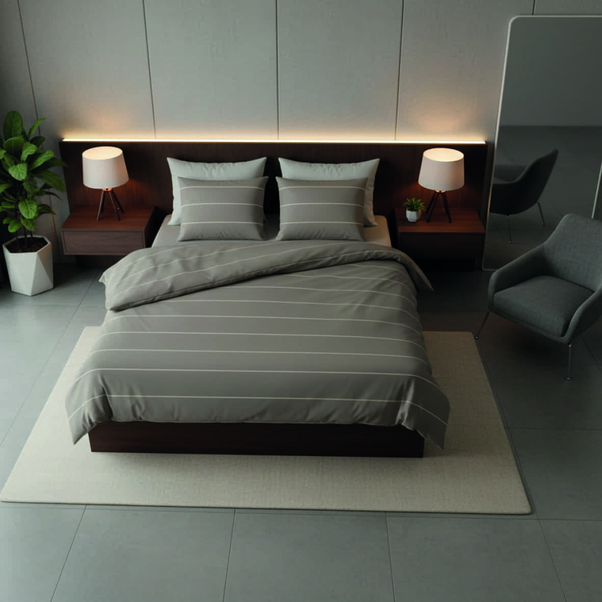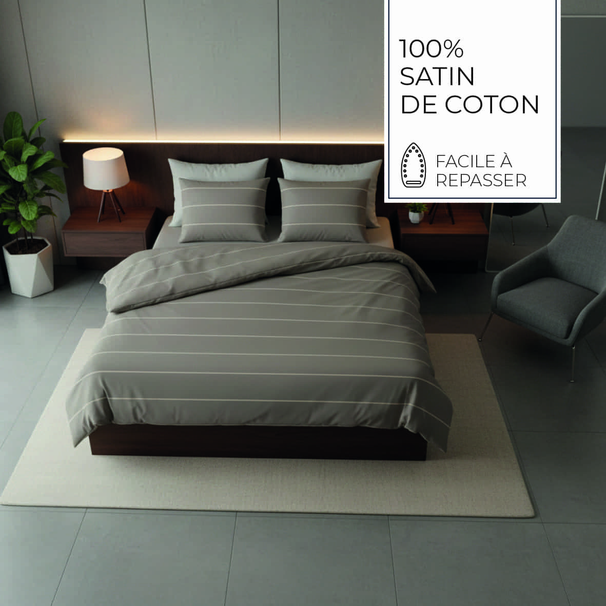 Housse de couette + taie d’oreiller satin de coton – Lucien Taupe – 240 x 220 cm + 2 x (63 x 63 cm)