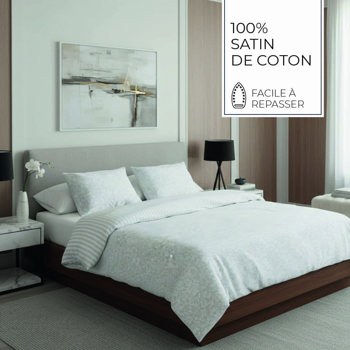 Le satin de coton révèle une douceur soyeuse et une élégance discrète, idéale pour sublimer chaque chambre. Taies d’oreiller, draps et housses de couette invitent à un sommeil luxueux et confortable, nuit après nuit.