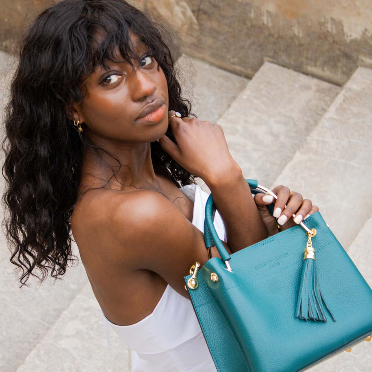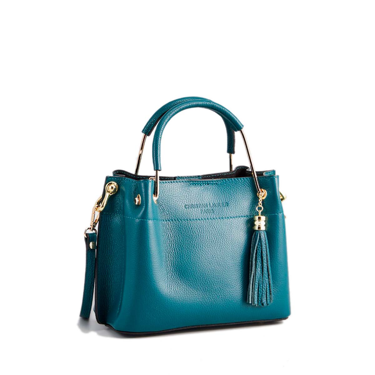 Sac à main. 2 anses + 1 bandoulière. Ouverture à zip. Intérieur : petite poche à zip + poches à cartes