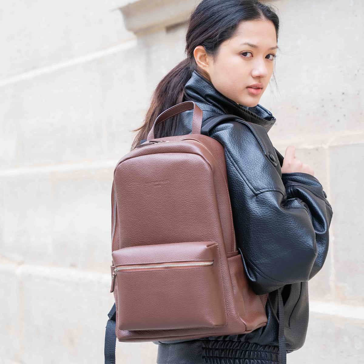 Le sac à dos LIBRE est un sac à dos en cuir de vachette à la silhouette compacte et moderne.