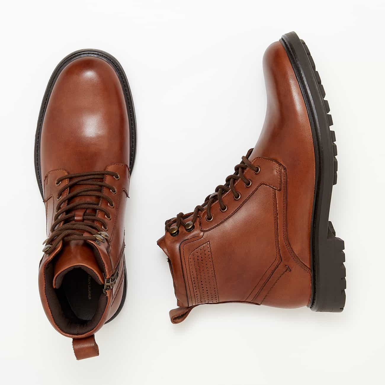 BOOTS 0, Matière Tige: CUIR DE VACHETTE, Matière Premiere: CUIR DE MOUTON, Matière Doublure: CUIR DE MOUTON, Semelle: ELASTOMERE, Pays de Fabrication: INDE, Type de Bout: BOUT ROND, Type de Fermeture: LACETS.
