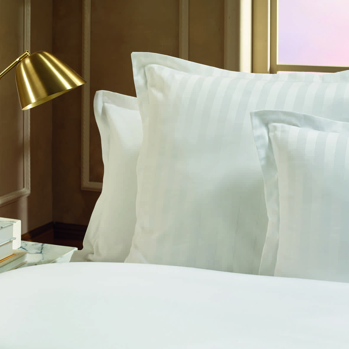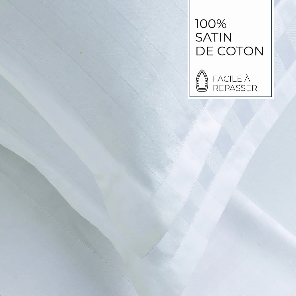 Set de 2 taies d’oreiller satin de coton rayure tissé dobby – Blanc 01 – 2 x (50 x 70 cm)