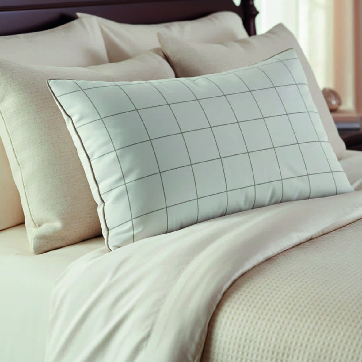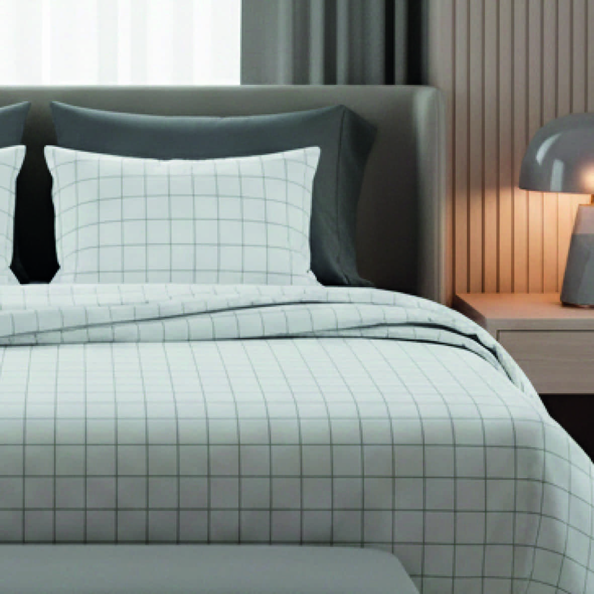 Taie de traversin satin de coton – Simples carreaux Blanc / Taupe – 43 x 210 cm