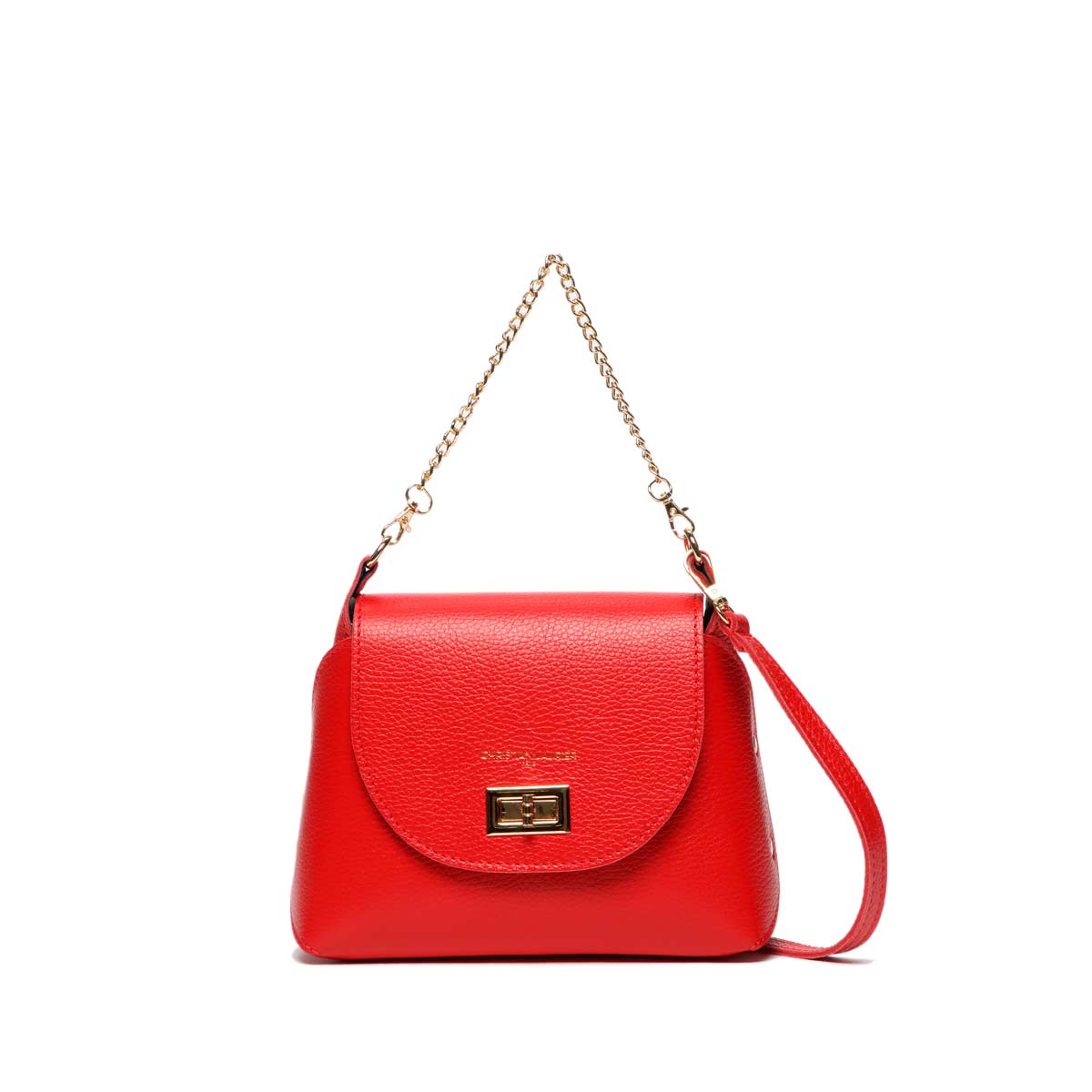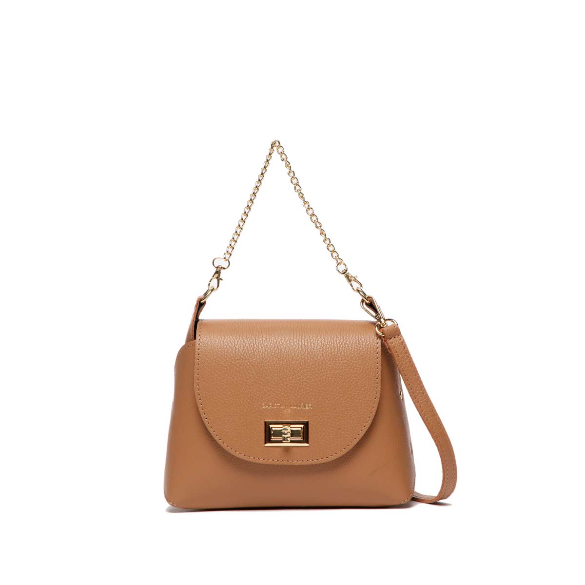 Sac à bandoulièrer en cuir, ouvertur à loquet. Vient avec sa chaine amovible + une bandoulière réglable et amovible.